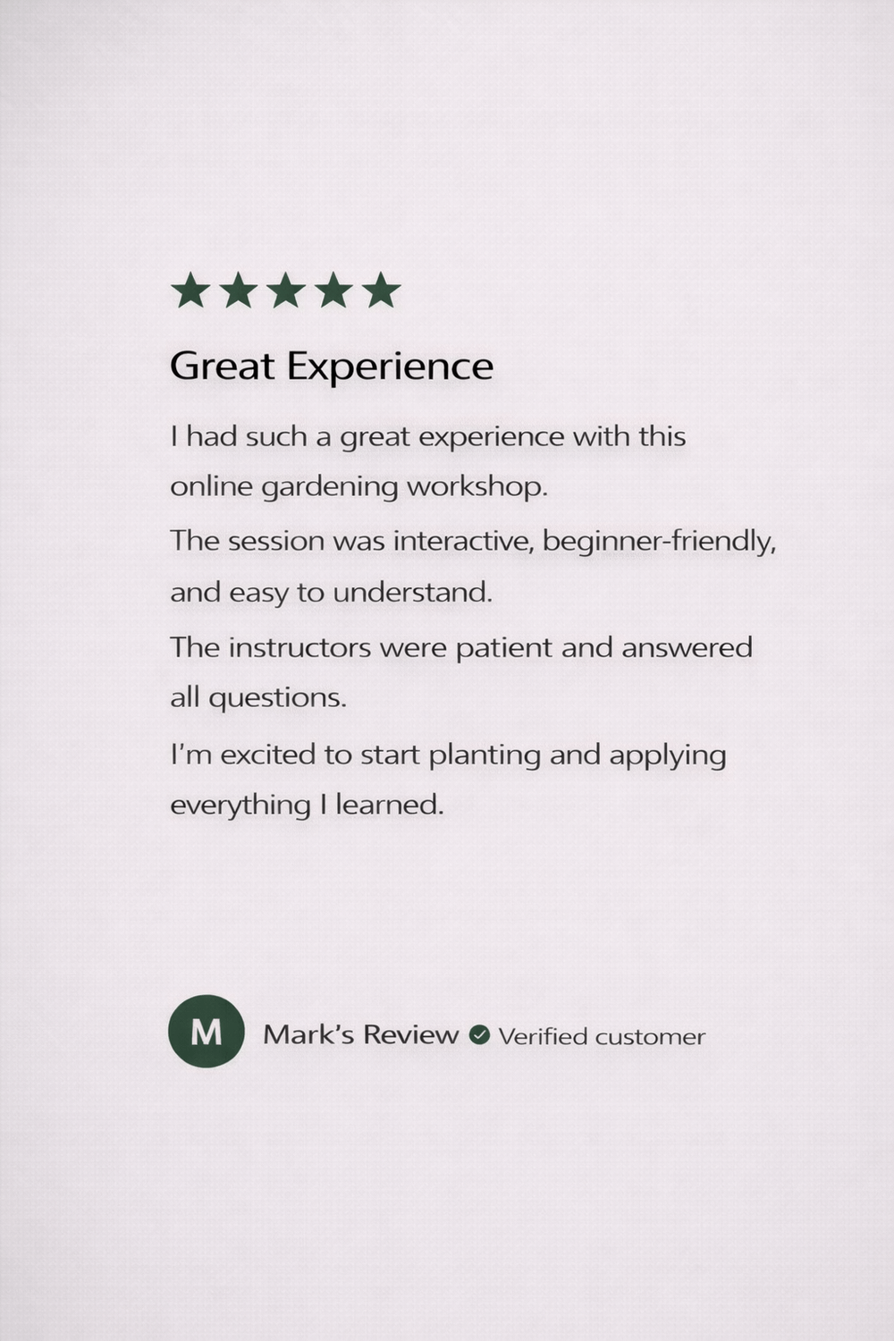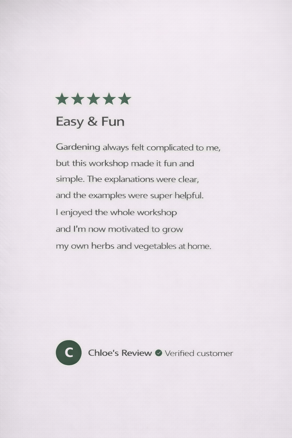 You’ll leave this workshop with the ability to grow food that’s fresh, safe, and sustainable for life.